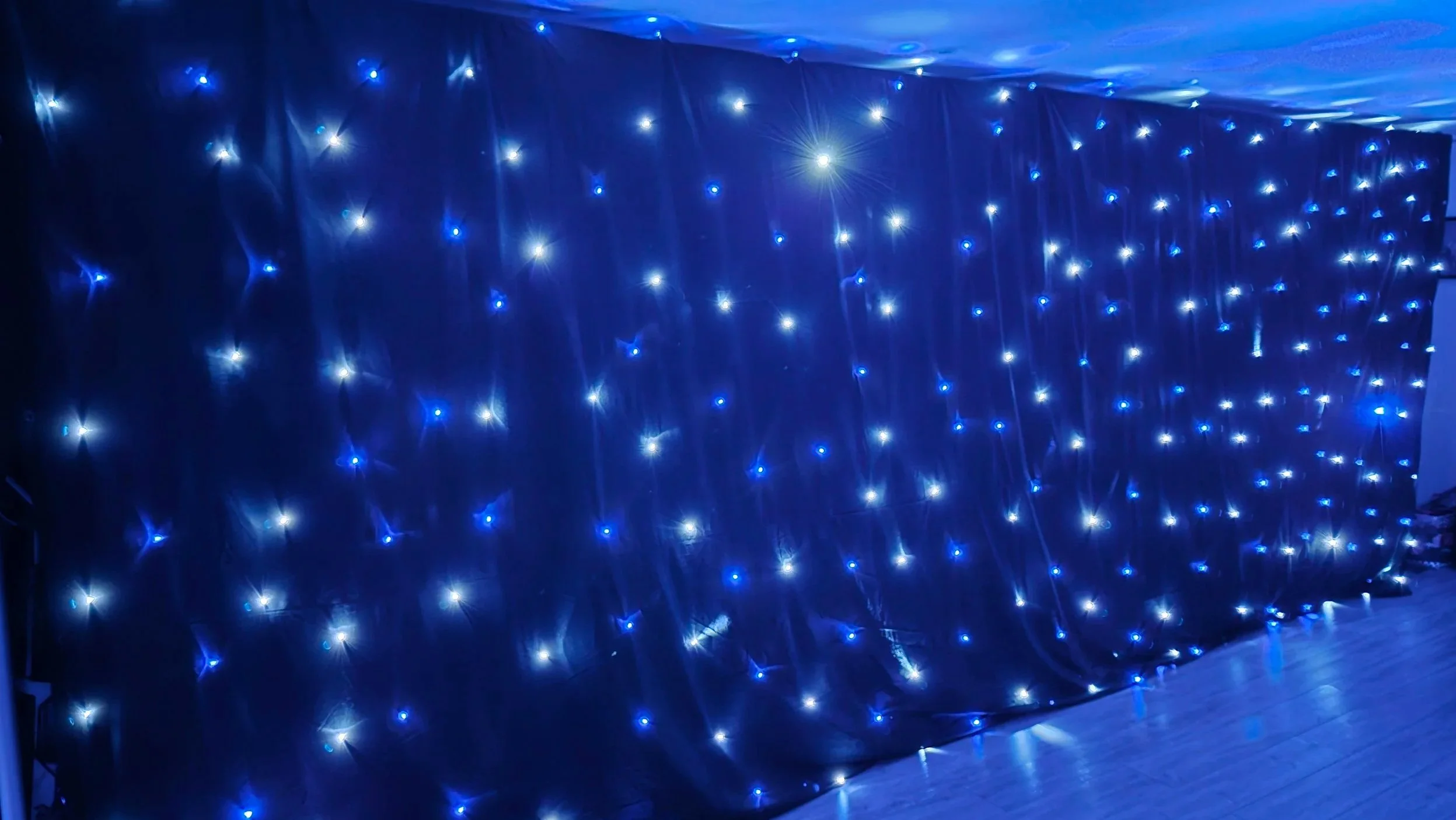 Bring the party to life with a huge 3m x 6m LED light display. Featuring options of sound activation mode, strobe effect, fast/slow twinkle, constant and so many more, the Indoor Night Sky never looked so fabulous!