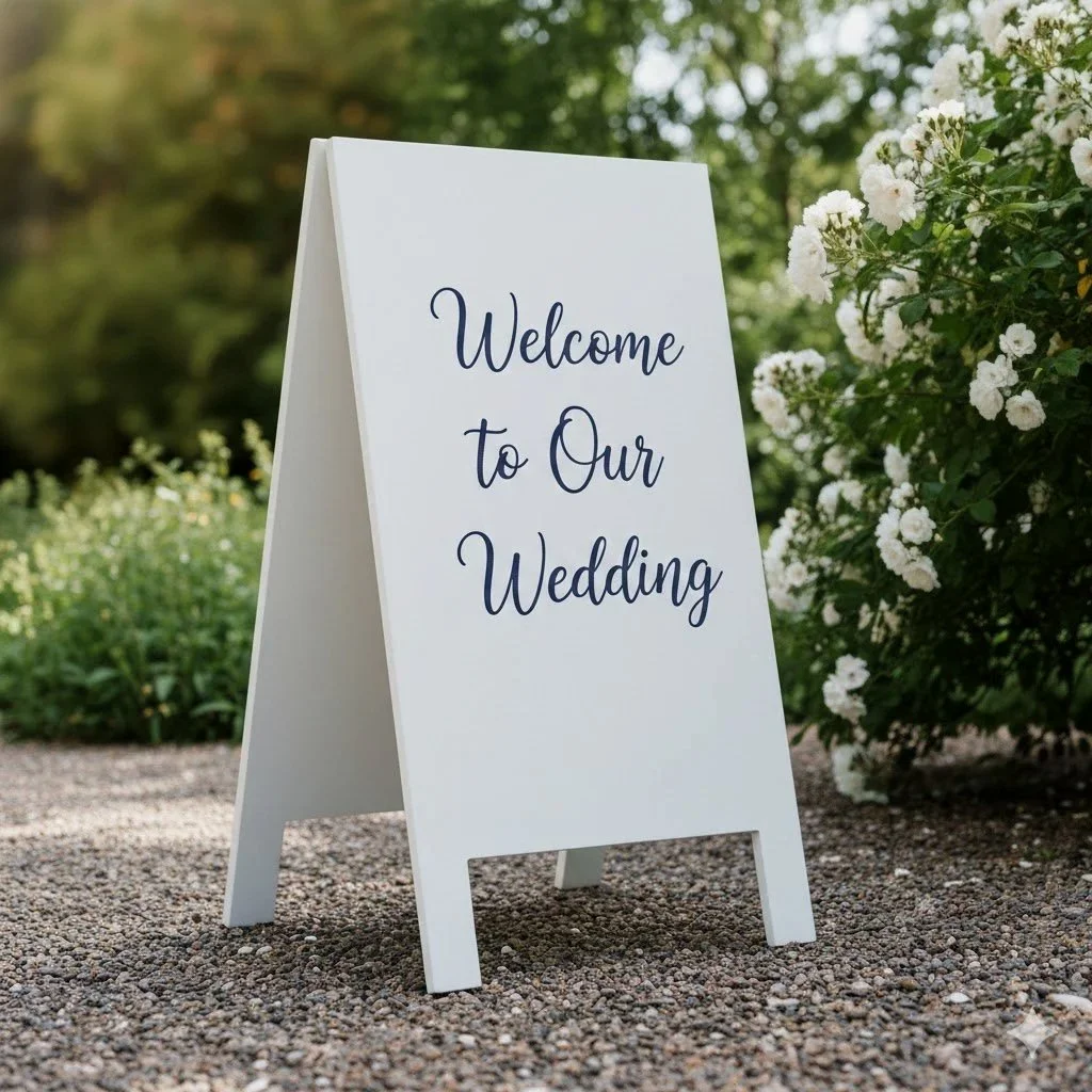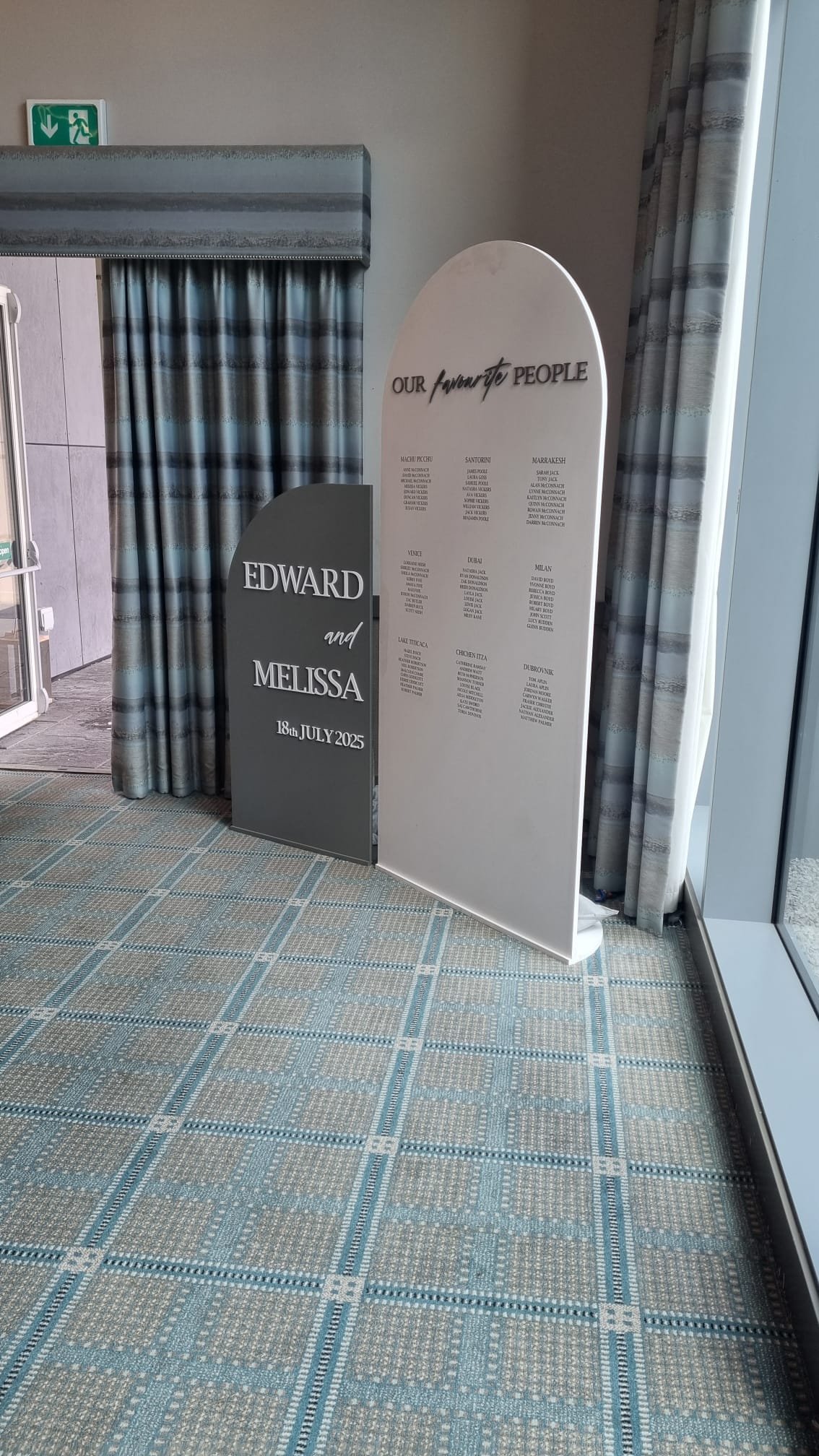 With CNC cutting technology, we manufacture any size and any shape display board to your own specifications. So whether you want a 2 meter sail board to DIY your seating plan, custom sandwich boards to make your table numbers or arrows to guide your guests around the venue, you dream it, we’ll make it! Pictured display boards are also available to hire, decorated, set up and taken down by the Larks and Sparks team.